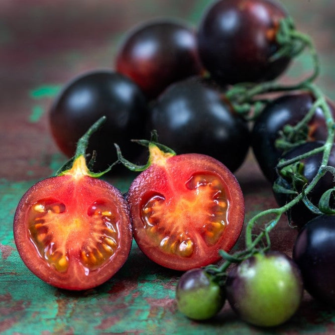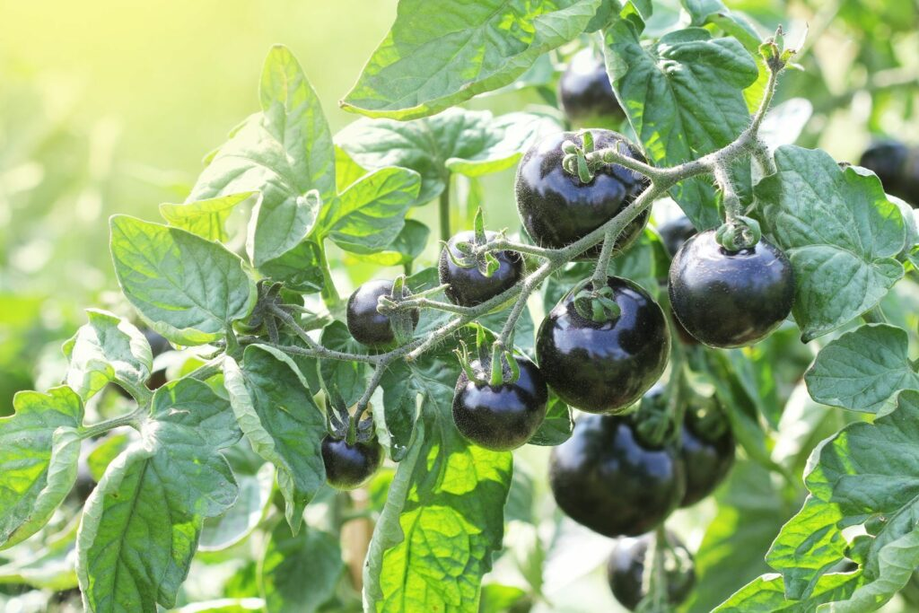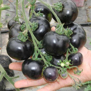 Koyu, mor-siyah renkte, küçük, yuvarlak domatesler üretir.