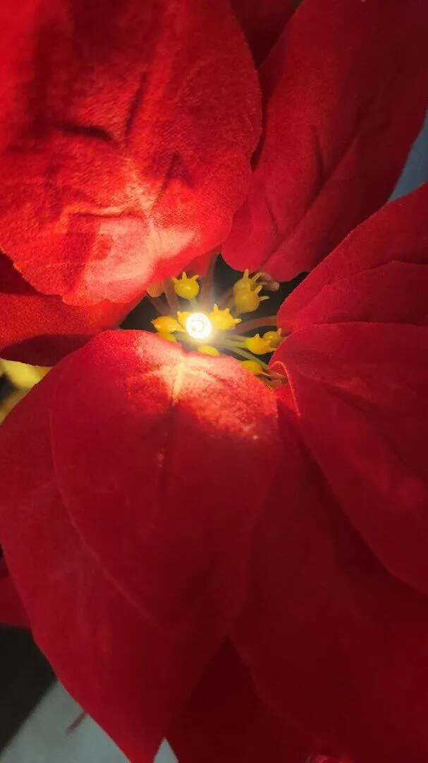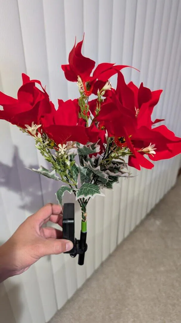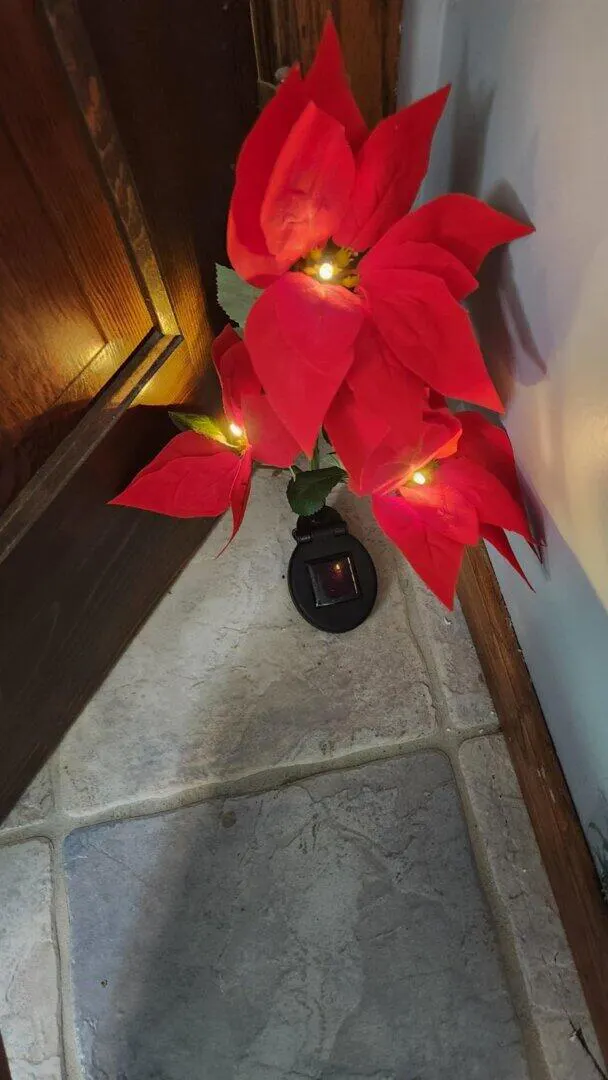 I wasnโt sure how bright they would be, but wow โ they exceeded my expectations. The petals look like real Poinsettias, and the warm glow makes my front garden feel so cozy for Christmas. I love that they recharge on their own, so I donโt have to deal with wires or timers.