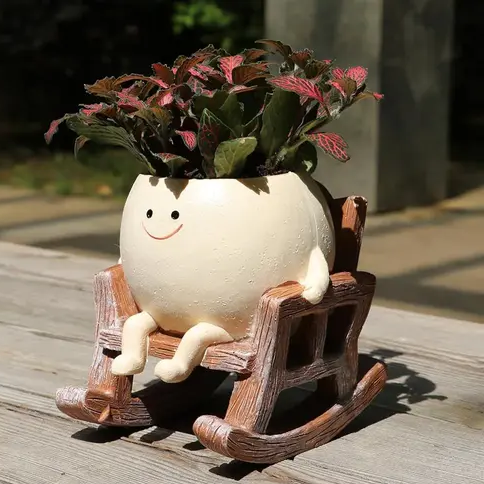 Bu saksı hem sevimli hem de kaliteli malzemelerden yapılmış. Sallanan sandalye tasarımı çok yaratıcı ve bitkilerimi güvenle tutuyor. Çok iltifat aldım ve koleksiyonuma daha fazlasını eklemeyi planlıyorum!