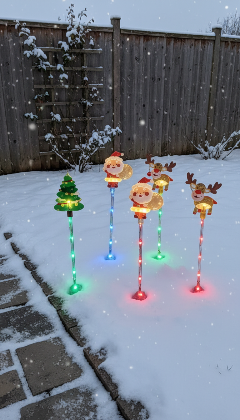 Bright Christmas-themed lights instantly transform your garden, porch, or pathway into a warm and joyful holiday display.